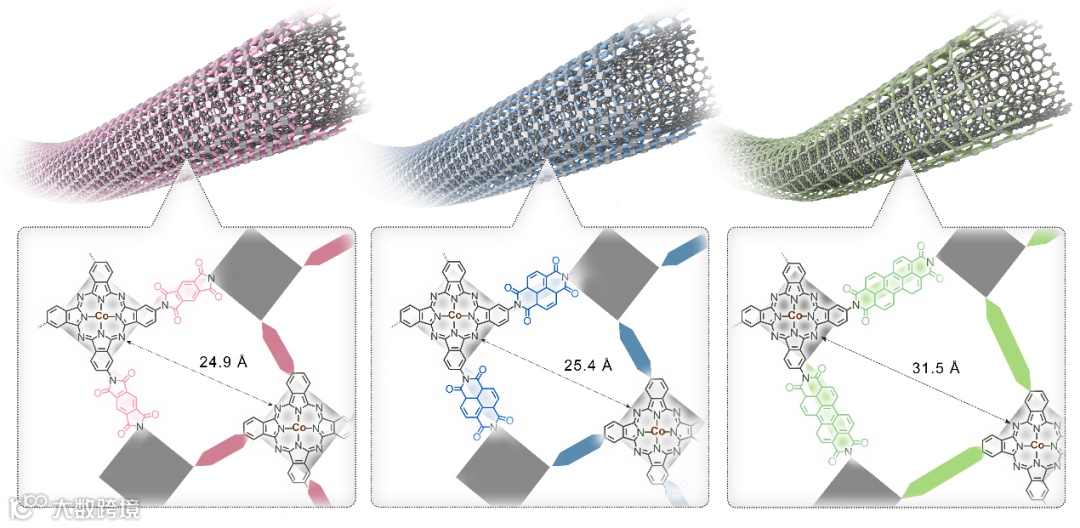 提出以共轭有机酸酐作为间隔分子优化酞菁钴位点的空间分布,制备了系列活性密度可调的分子间隔单原子催化剂(msSAC),并且发现在不明显改变活性位点的总数目和电子结构的情况下,也可以显著地提高有效活性密度,催化传质和催化耐久性。该工作为催化性能的优化提供了一种超越传统电子结构调控的分子增强方案。