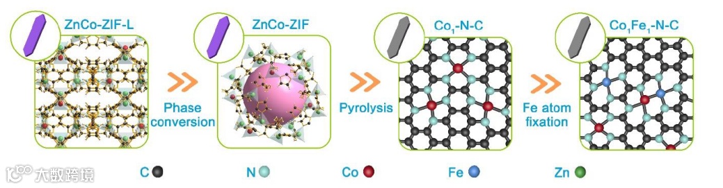 图1. 双原子Co1Fe1-N-C纳米棒的制备过程示意图。