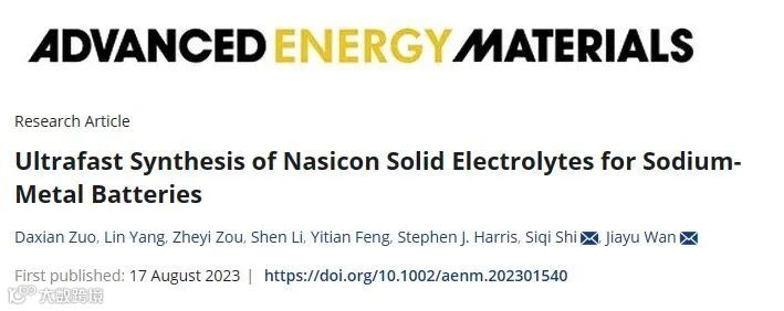NASICON结构固态电解质(SSEs)作为一种非常有前途的钠固态金属电池(NaSMB)材料,由于其在潮湿环境中具有优异的稳定性、高离子导电性和安全性,因此受到了广泛关注。然而,当前NASICON型SSEs的传统合成方法通常是劳动密集、高耗时及高耗能的,其制备过程需要持续数小时甚至数天,大大阻碍了其性能优化和加速发现的进程。因此,快速合成和优化高性能NASICON型SSEs是非常重要的。