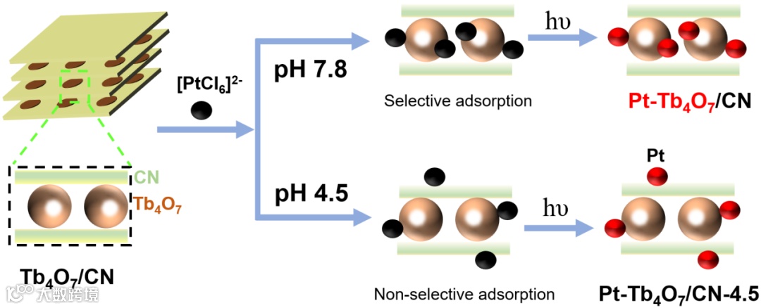 图2. Pt-Tb4O7/CN和Pt-Tb4O7/CN-4.5光催化制备流程示意图。
