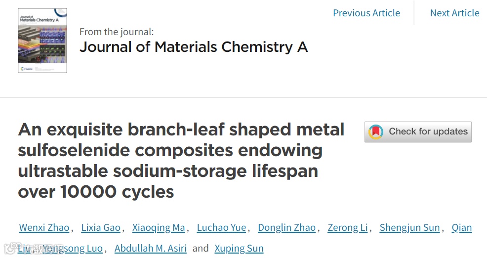 基于此,来自电子科技大学的孙旭平教授团队在国际知名期刊Journal of Materials Chemistry A上发表题为“An exquisite branch-leaf shaped metal sulfoselenide composite endowing ultrastable sodium-storage lifespan over 10000 cycles”文章。