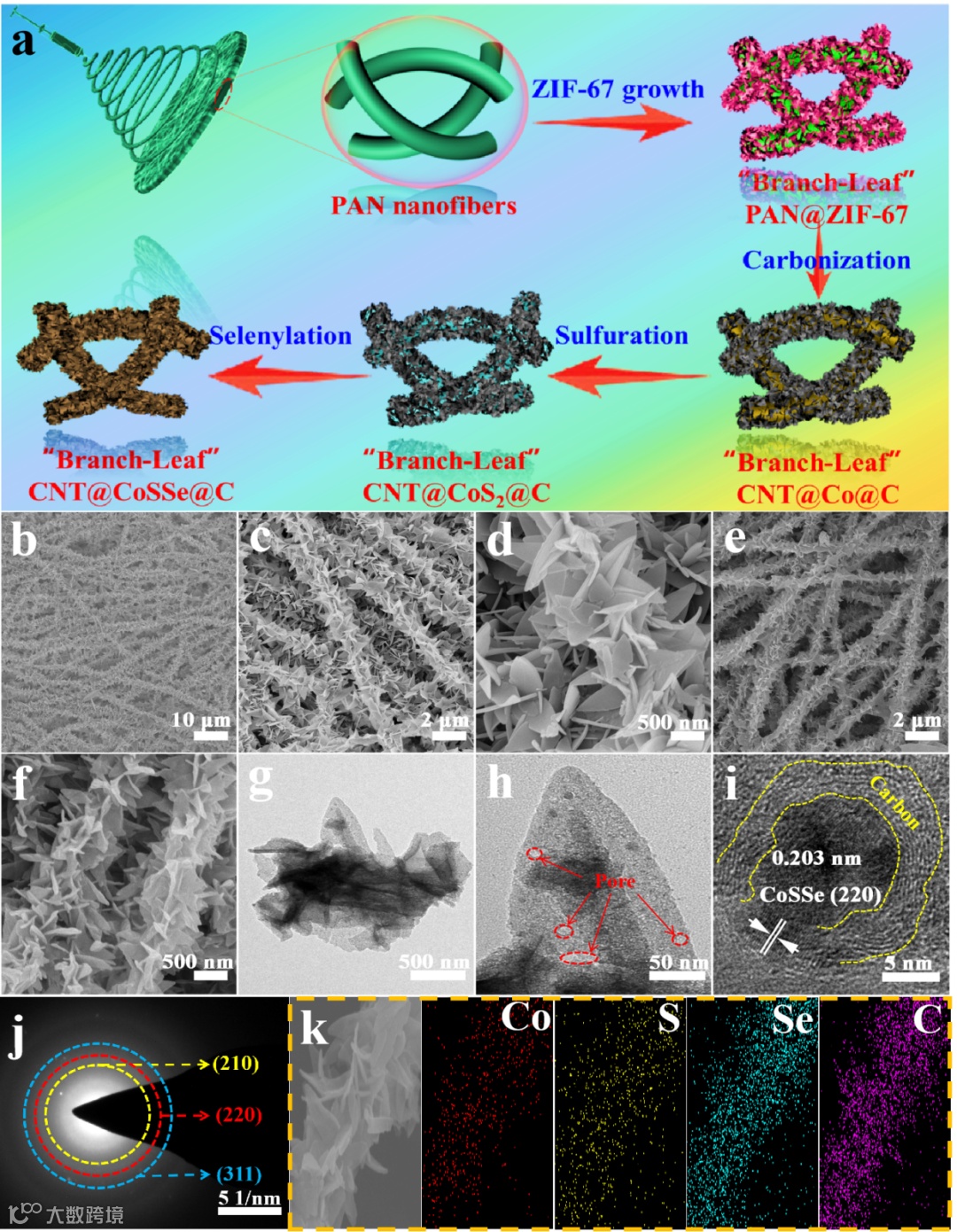 要点一: “枝-叶”状CNF@CoSSe@C复合材料的制备与结构表征