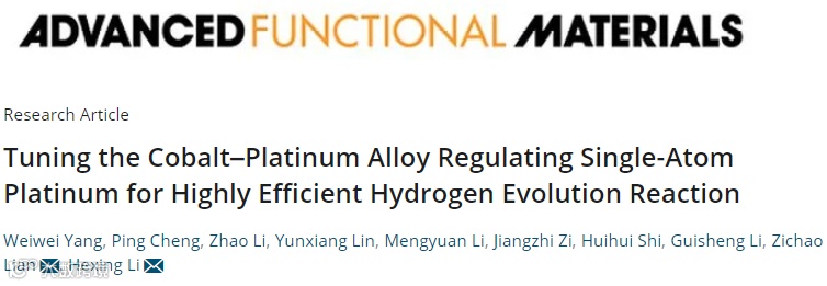 DFT计算进一步表明:CoPt合金的存在可以调控PtSA具有较高的d-带占据率,从而促进电催化HER动力学反应。基于此, CoPt-PtSA/NDPCF催化剂在碱性和酸性条件下,负载0.42 wt.% Pt的CoPt-PtSA/NDPCF具有价格低廉、电化学活性高、电流密度大、铂有效利用率高和循环寿命长等优势,可以进一步大规模推广到实际应用中。该论文发表在国际知名期刊Advanced Functional Materials上。杨伟伟,程平,李召,林运祥为本文第一作者,廉孜超教授和李和兴教授为论文的通讯作者。