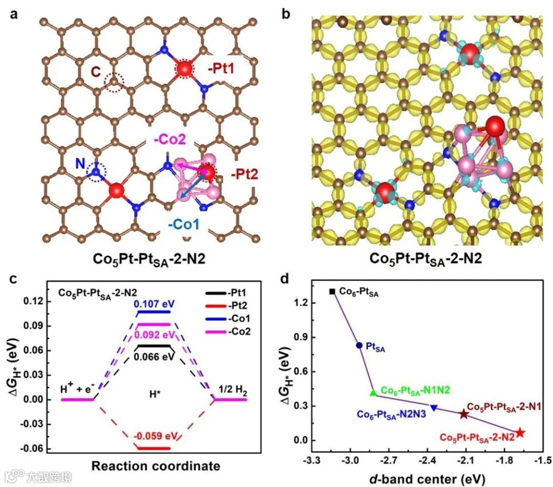 1. 通过调控CoPt合金与PtSA的协同作用,使得PtSA具有较高的d-带占据率,可以提供更多的自由电子来增强H*转化,进一步促进了催化剂的电催化HER动力学反应。
