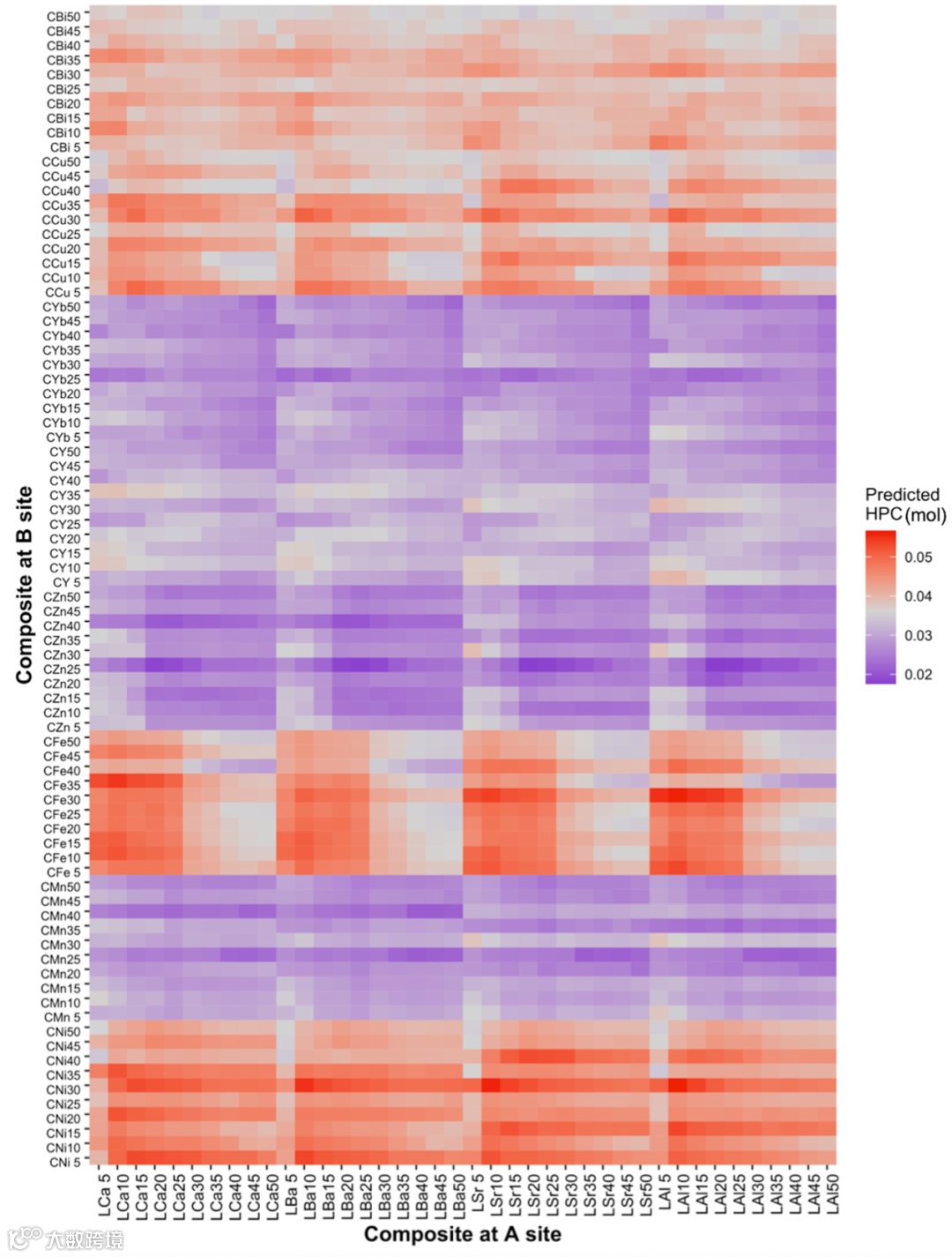 本文预测了3200种未知氧化物在400–700 oC的质子引入量(600 oC如图2所示),从而筛选高效氧化物用于PCC空气极。