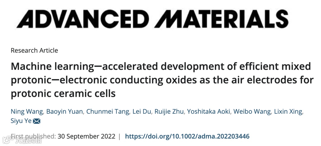 广州大学黄埔氢能源创新中心叶思宇院士、汪宁博士,华南理工大学袁保印博士,北海道大学唐春梅博士等人在Advanced Materials 上发表了题为“Machine learning–accelerated development of efficient mixed protonic–electronic conducting oxides as the air electrodes for protonic ceramic cells(DOI: 10.1002/adma.202203446)”的研究论文。