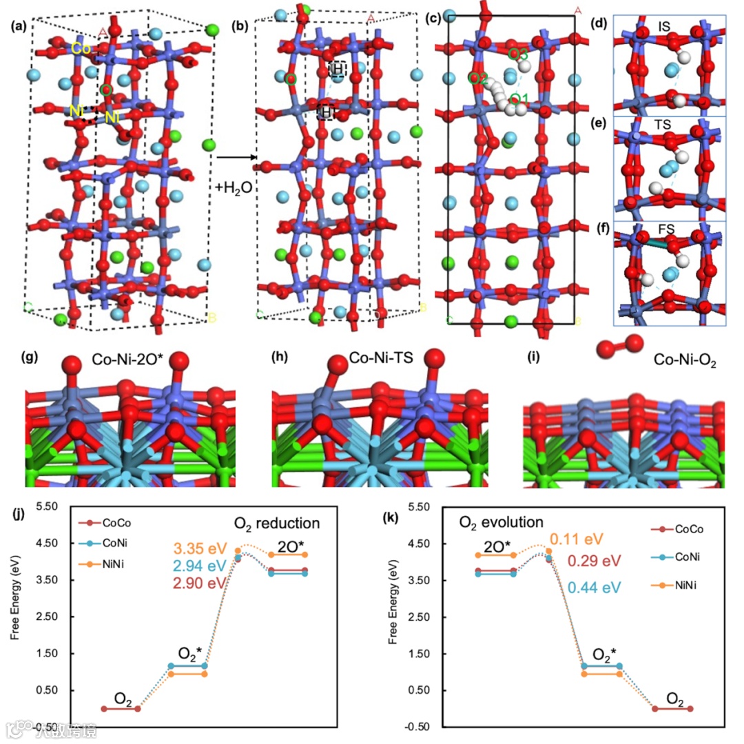本文通过DFT计算得到了筛选的氧化物的水化反应能,质子迁移能,以及ORR/OER的活性位点(图3)。