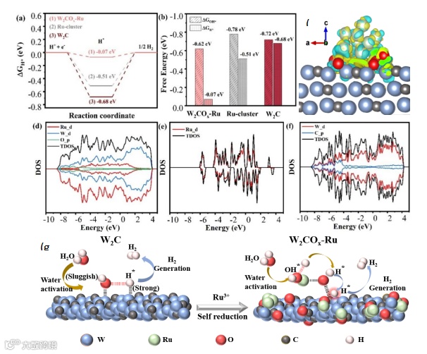 要点三:理论计算解释了W2COx-Ru/CC碱性HER活性提升的来源