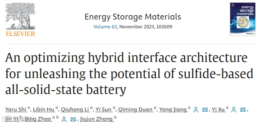 Y. Shi, L. Hu, Q. Li, Y. Sun, Q. Duan, Y. Jiang, J. Yi, Y. Xu, B. Zhao, J. Zhang, An optimizing hybrid interface architecture for unleashing the potential of sulfide-based all-solid-state battery, Energy Storage Materials, 2023, 63, 103009.