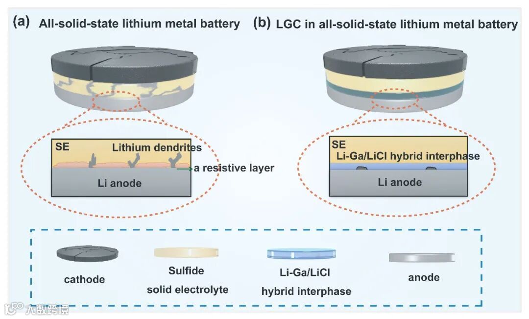 图1:(a) 传统ASSLMB和 (b) 设计的具有LGC界面层的ASSLMB的示意图。