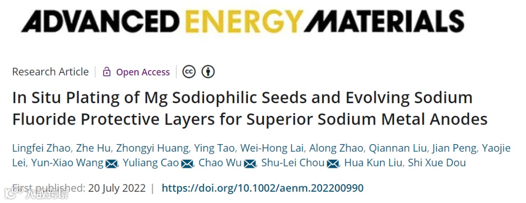 基于此,来自伍伦贡大学的王云晓高级研究员与温州大学的侴术雷教授、武汉大学的曹余良教授,上海大学的吴超教授等合作,在国际知名期刊Advanced Energy Materials上发表题为“In Situ Plating of Mg Sodiophilic Seeds and Evolving Sodium Fluoride Protective Layers for Superior Sodium Metal Anodes”的研究文章。