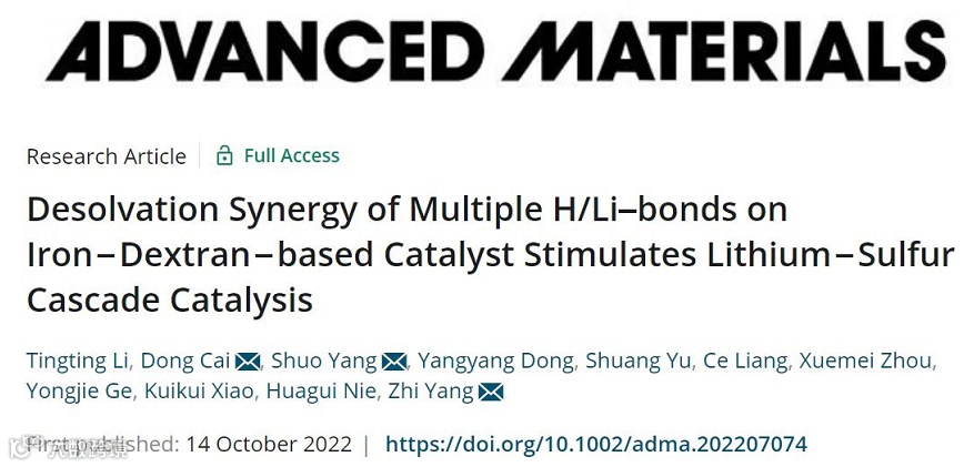 从氧还原到硫转化,仿生分子催化新策略!温州大学杨植&蔡冬&杨硕AM:右旋糖酐铁多重H/Li键协同去溶剂化,激发级联催化