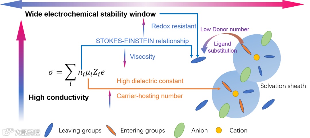 图1. 插图显示了配体取代策略如何提高 ESW 和电解质的离子电导率。
