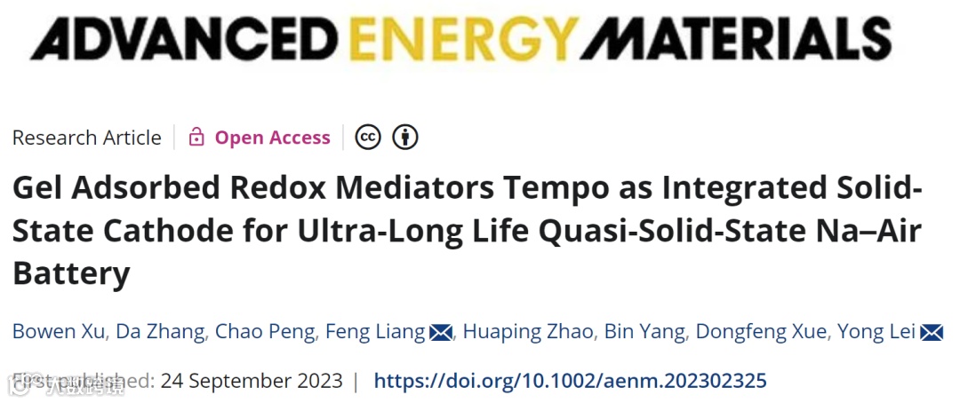 凝胶吸附氧化还原介质 Tempo 作为超长寿命准固态 Na-Air 电池一体化阴极