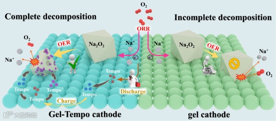 图1. 准固态Na-Air电池中使用Gel-Tempo或gel阴极的电化学反应机理图。