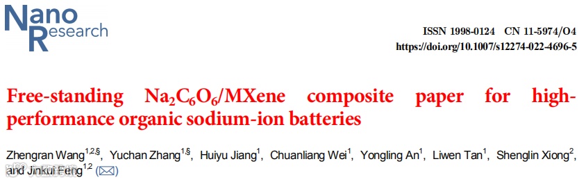 基于此,来自山东大学的冯金奎教授,在国际知名期刊Nano research上发表题为“Free-standing Na2C6O6/MXene composite paper for high-performance organic sodium-ion batteries”的研究文章。