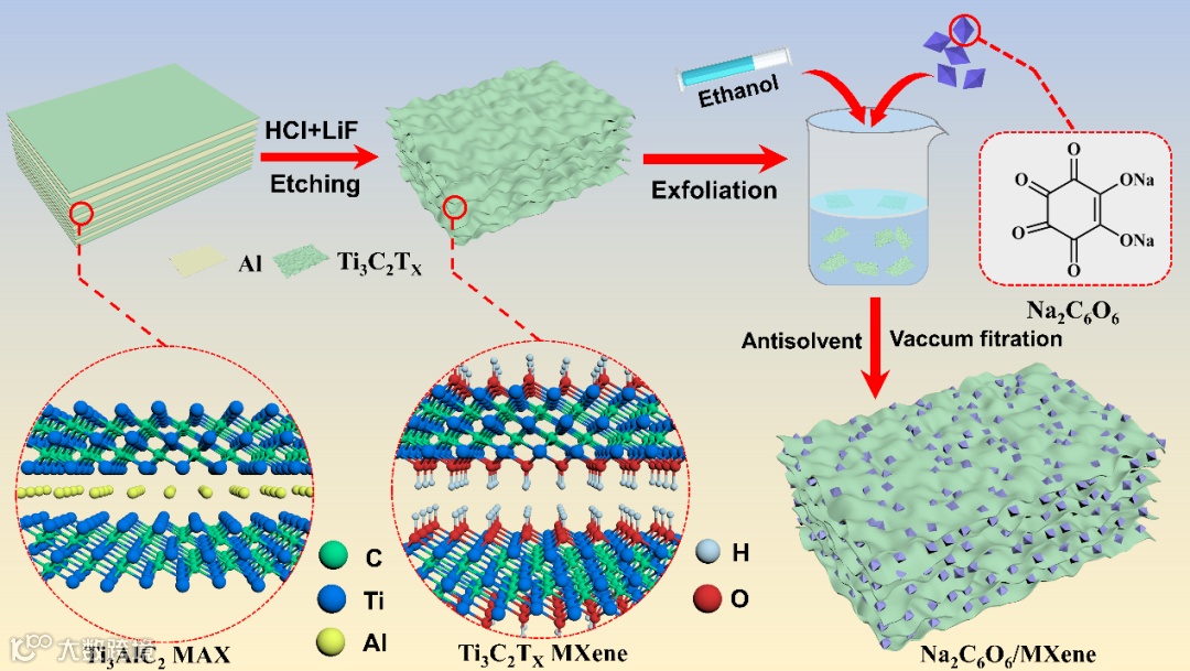 图1. 柔性Na2C6O6/MXene 复合膜的合成示意图