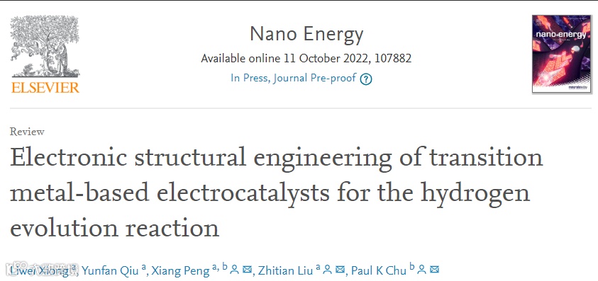 电解水制氢是代替化石能源的最佳选择之一。然而,在工业生产中,电解水产氢受到贵金属价格昂贵、反应动力学缓慢的限制。因此,开发效率更高,成本低廉的非贵金属电催化剂材料是发展电解水制氢技术的关键。对过渡金属基电催化剂电子结构的调控能够有效改善中间产物在催化活性位点的吸附,加快反应动力学,从而提高催化性能。