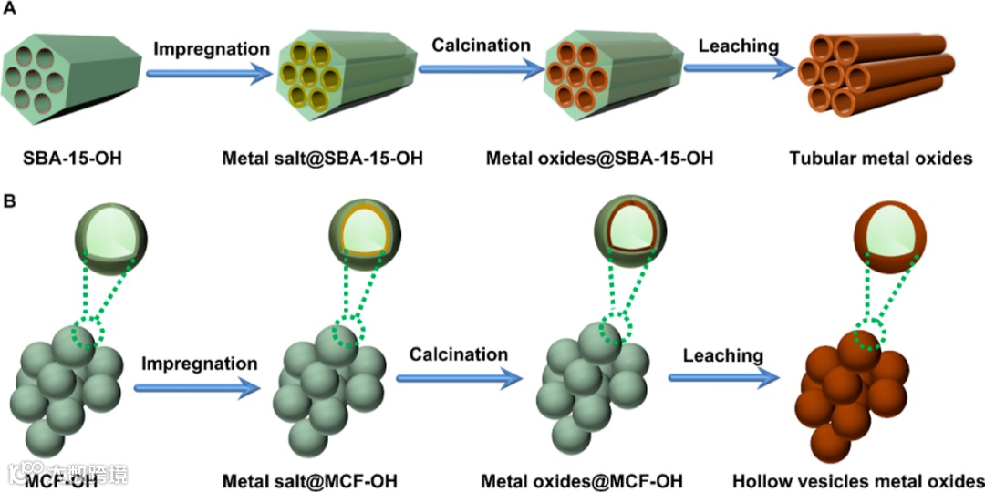 并通过29Si和1H MAS NMR谱证实,丰富的界面硅羟基基团与金属物种的强相互作用是形成空心结构和超高比表面积介孔金属氧化物的关键。这些具有空心结构的介孔金属氧化物在催化、吸附、传感、电池和许多其他领域等具有潜在的应用。