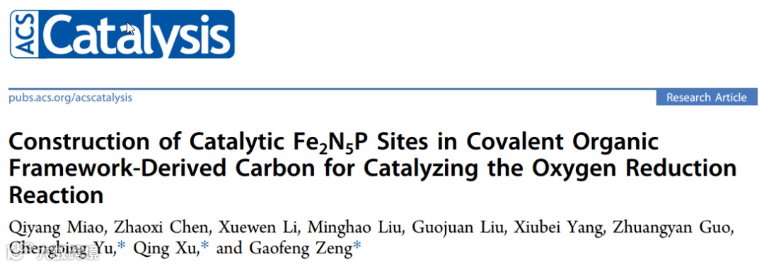 近日,来自中科院上海高等研究院的曾高峰研究员与徐庆副研究员团队,在国际知名期刊ACS Catalysis上发表题为“Construction of Catalytic Fe2N5P Sites in Covalent Organic Frameworks-derived Carbon for Catalyzing the Oxygen Reduction Reaction”的观点文章。该观点文章分析了通过共价有机骨架材料和金属有机骨架的衍生中空碳材料中的活性位点,同时探索了其在碱性与酸性电解质条件下氧还原反应中的研究。