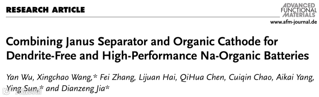 Janus隔膜和有机正极材料相结合用于无枝晶和高性能钠-有机电池