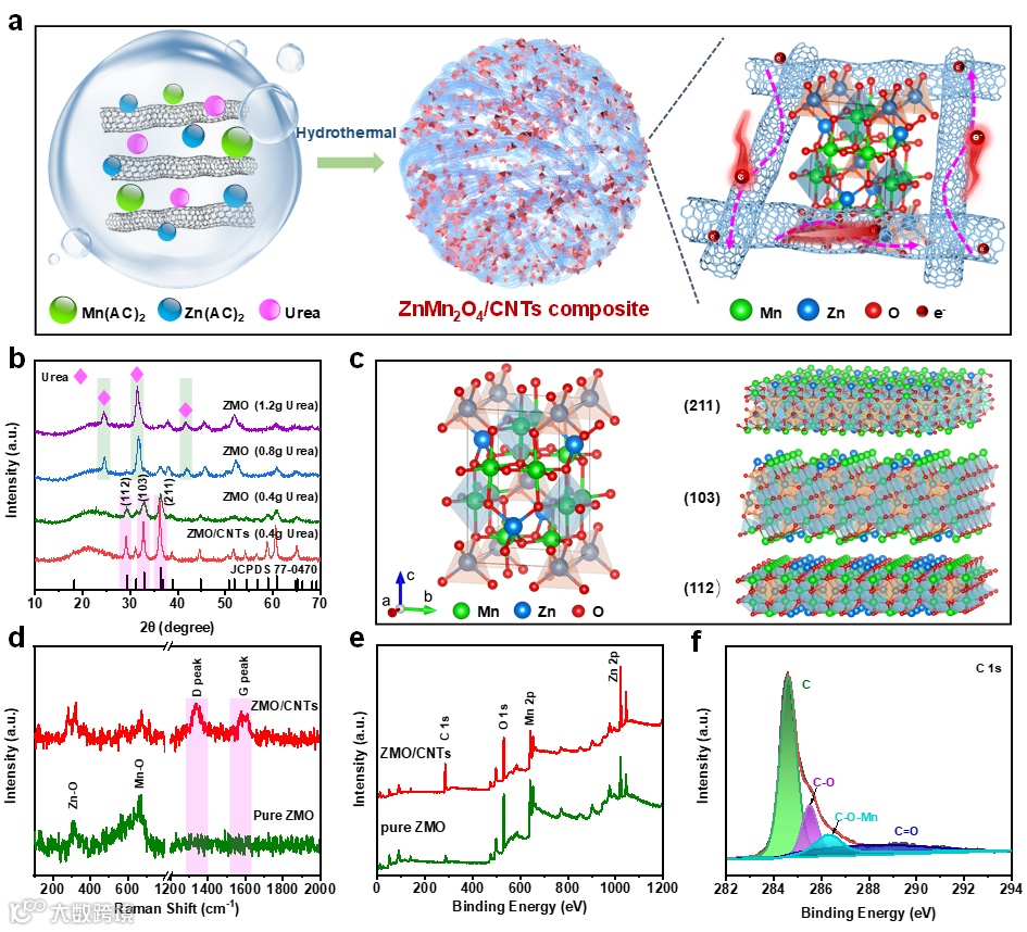 图1. ZMO和ZMO/CNTs复合材料的合成和结构表征。