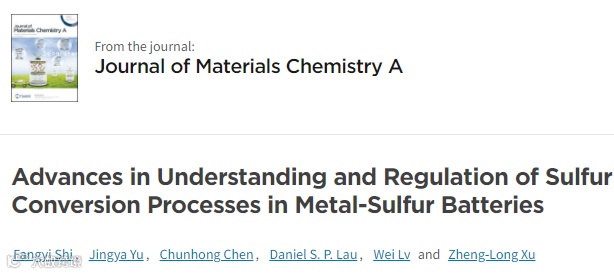 基于此,香港理工大学的徐正龙,在国际知名期刊Journal of Materials Chemistry A上发表题为“Advances in Understanding and Regulation of Sulfur Conversion Processes in Metal-Sulfur Batteries”的综述。