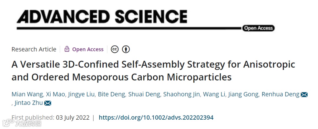 基于此,来自华中科技大学的朱锦涛教授、邓仁华研究员等人在国际知名期刊《Advanced Science》上发表题为“A Versatile 3D-Confined Self-Assembly Strategy for Anisotropic and Ordered Mesoporous Carbon Microparticles”的研究论文。