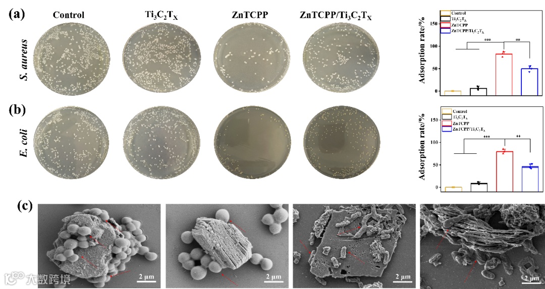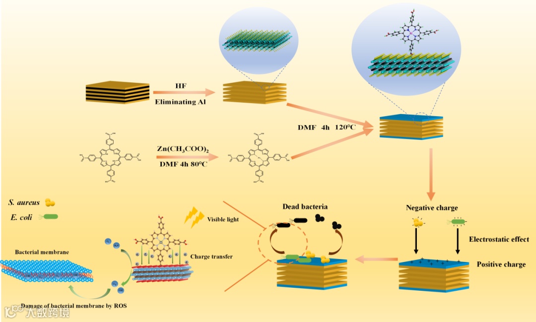 ZnTCPP/Ti3C2TX杂化材料可以通过静电吸附捕获细菌,从而进一步增强可见光催化杀菌效率。