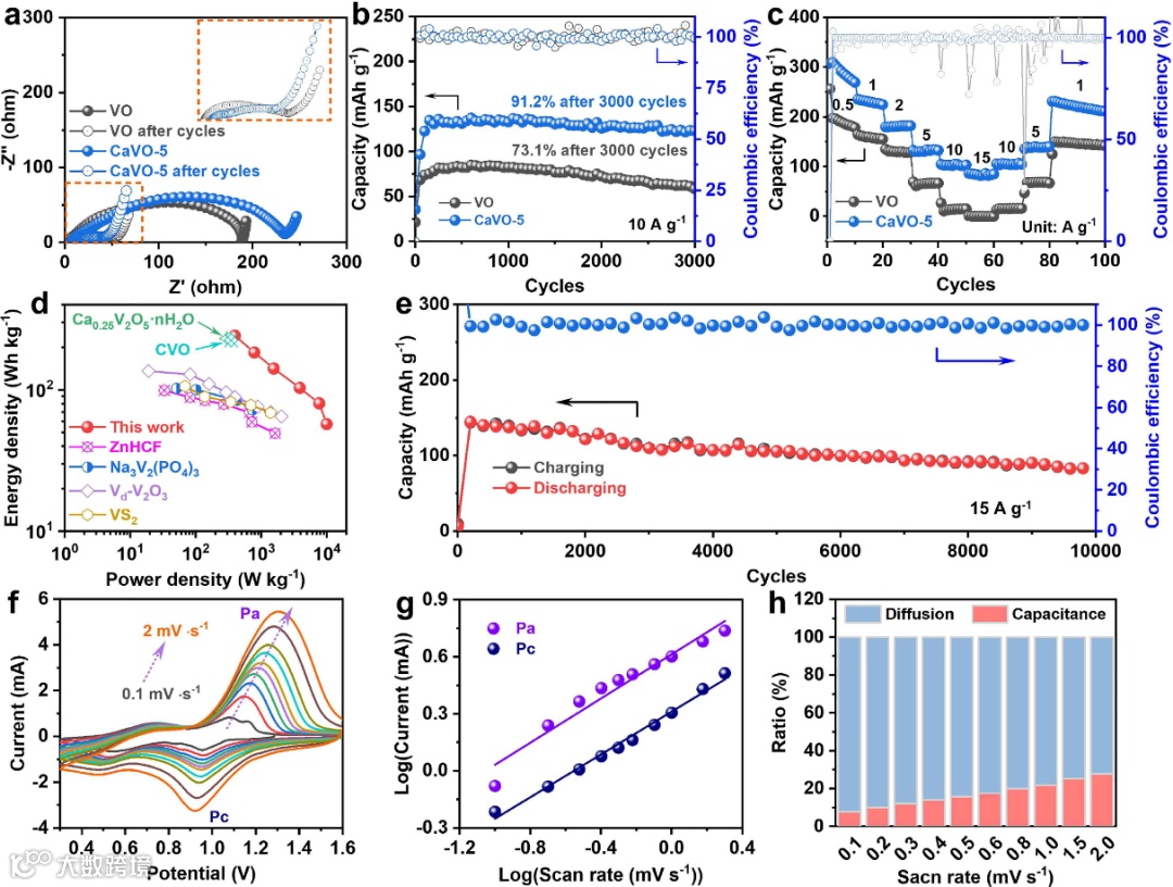 图 3. VO和CaVO-5的电化学性能.
