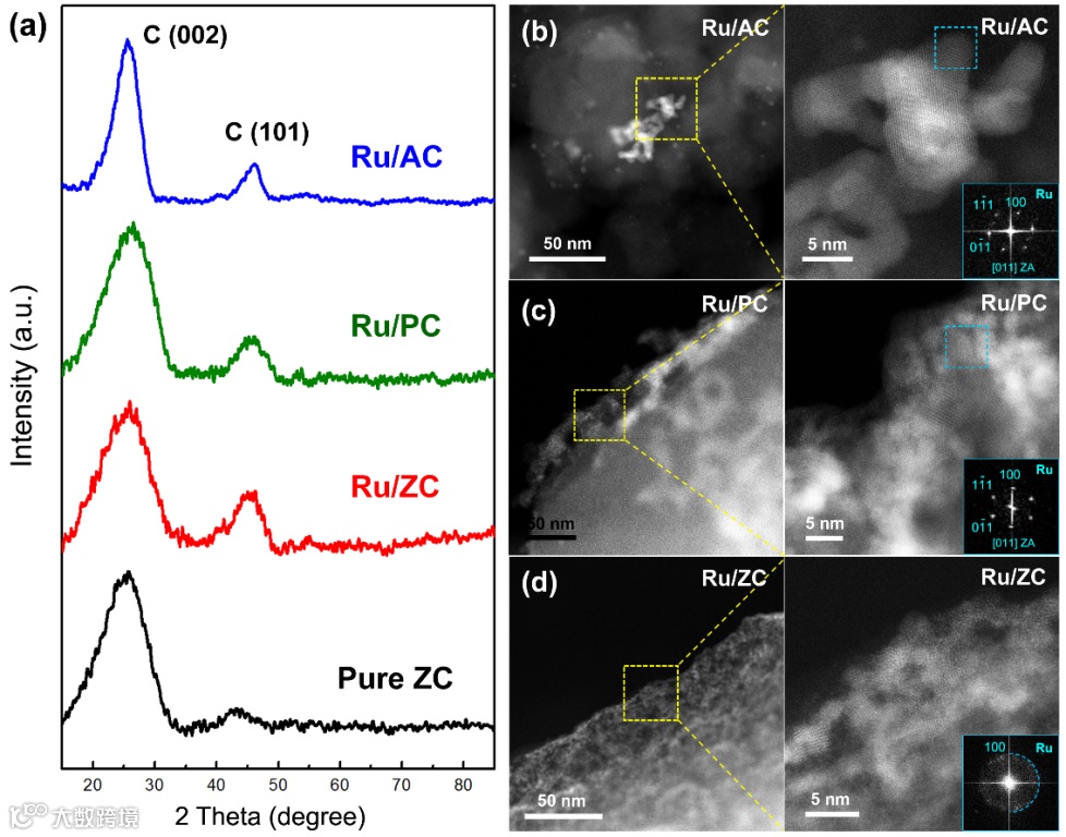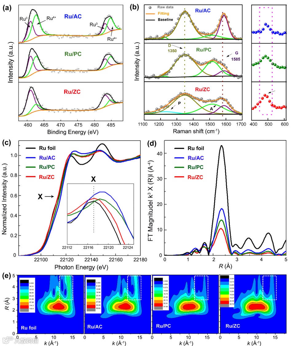 基于AC-STEM、XPS、Raman和XAS的详尽表征,系统地比较和研究了不同碳载体材料(包括AC、PC和ZC)对Ru分散和化学态的影响。结果发现,Ru/ZC催化剂具有很强的金属-载体相互作用,使Ru保持在金属态,并保持高度分散,从而提高了HER在碱性介质中的活性和稳定性。