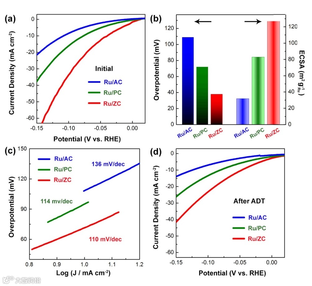 要点一:Ru/ZC催化剂具有很强的金属-载体相互作用,提高了HER在碱性介质中的活性和稳定性