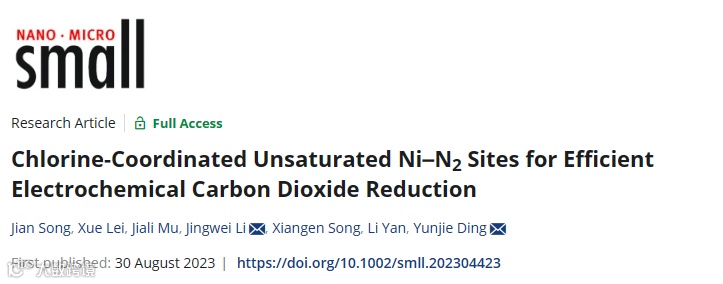 近日,来自大连化学物理研究所的丁云杰研究员和李经伟副研究员,在国际知名期刊Small上发表题为“Chlorine-coordinated Unsaturated Ni-N2 Sites for Efficient Electrochemical Carbon Dioxide Reduction”的文章。该文章报道了一种基于Cl官能团化碳载体上构筑不饱和Ni-N2位点的方法,并将其用于高效二氧化碳电还原反应。HAADF-STEM证实了高度分散的Ni单原子,EXAFs确定了不饱和的Ni-N2结构,结合DFT计算和原位拉曼表征确定了Cl原子是以离面配位形式存在的。