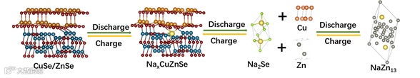 揭示了双金属硒化物异质结的多步氧化还原反应储钠机理,提出该异质结材料对应的微观结构演化原子模型。