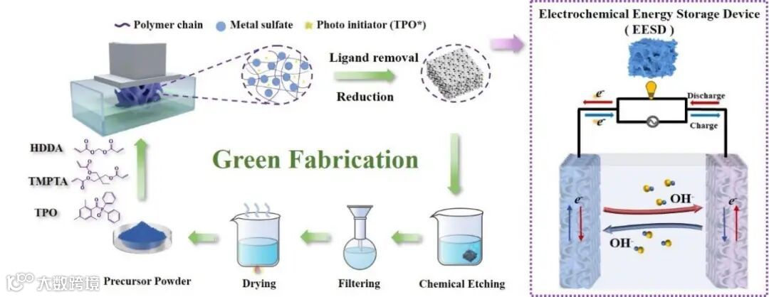面向高性能镍铁电池的三维可持续金属电极立体光刻技术