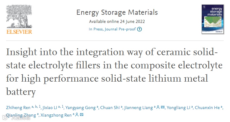 基于此,深圳大学的任祥忠教授和梁健能研究员合作,在国际知名期刊Energy Storage Materials上发表题为“Insight into the integration way of ceramic solid-state electrolyte fillers in the composite electrolyte for high performance solid-state lithium metal battery”的研究文章。该研究性文章分析了氧化物固态电解质以不同的形式与聚合物电解质整合时,对复合固态电解质的性能以及对固态锂金属电池的电化学性能的影响。