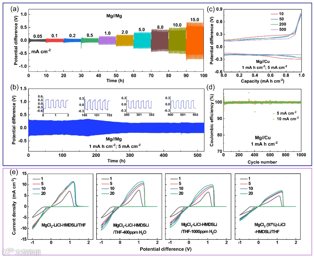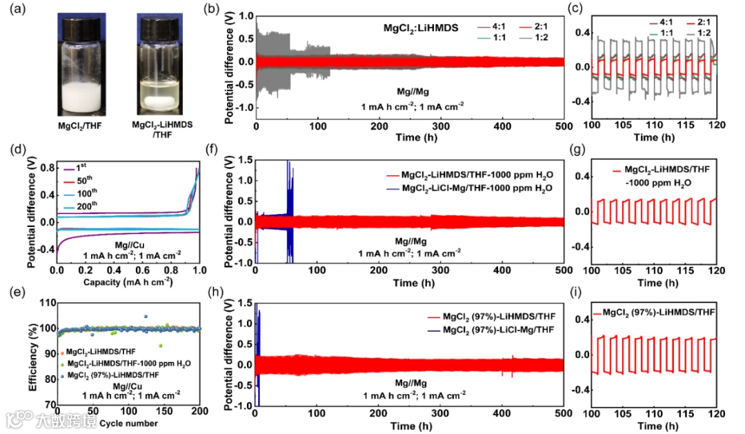 LiHMDS-LiCl 复合双盐添加剂可优化电解液的溶剂化结构,提升镁负极的可逆沉积、溶解性能以及电解液的耐水性。