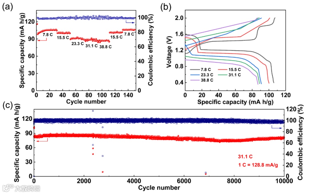 而使用无机LiCl作为共同添加剂可以重建[MgxLiyHMDSzCl2x+y-z· nTHF] 功能聚集体并避免其发生解离。使用该电解液的Mg//Mo6S8电池在31 C倍率下可以稳定循环10000圈。该工作发表在Energy Storage Materials上。