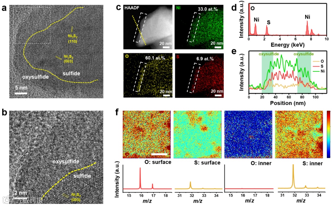 研究者比对了经历1 h,10 h,与100 h OER的硫化镍组成与结构的异同。