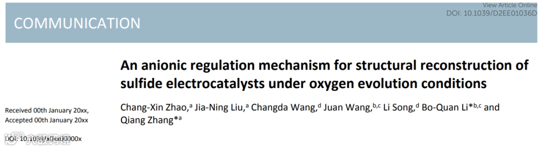 基于此,清华大学张强课题组联合北京理工大学李博权研究团队,在期刊Energy Environ Sci上发表题为“An anionic regulation mechanism for structural reconstruction of sulfide electrocatalysts under oxygen evolution conditions”的研究论文。