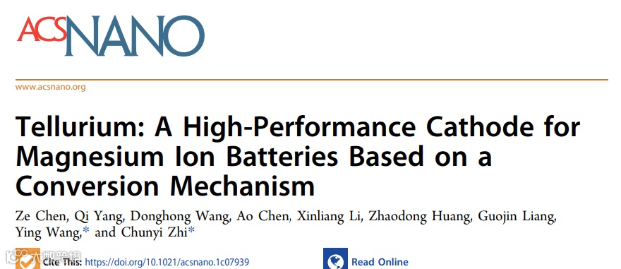 基于此,来自香港城市大学的支春义教授与中科院长春应化所的王颖研究员合作,在国际知名期刊ACS Nano上发表题为“Tellurium: A High-performance Cathode for Magnesium Ion Batteries Based on a Conversion Mechanism”的研究论文。