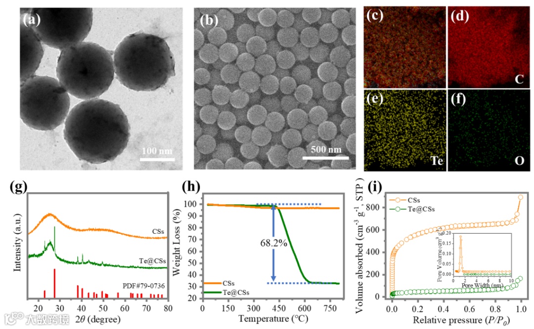 图1. 碲/多孔碳球复合材料表征。