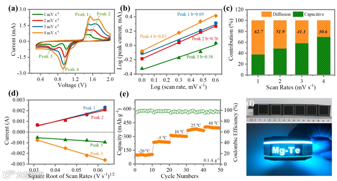 图5. 镁-碲电池动力学探究。