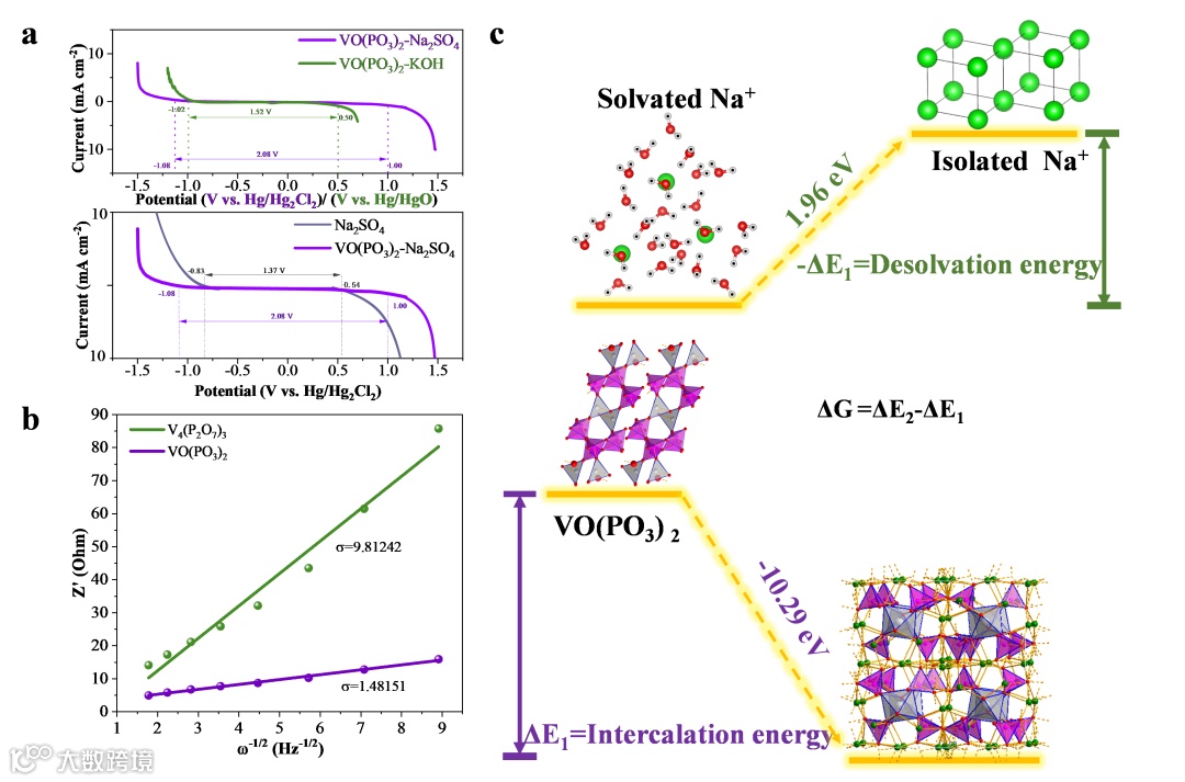 图2. VO(PO3)2电极拓宽电压窗口的吉布斯自由能差示意图