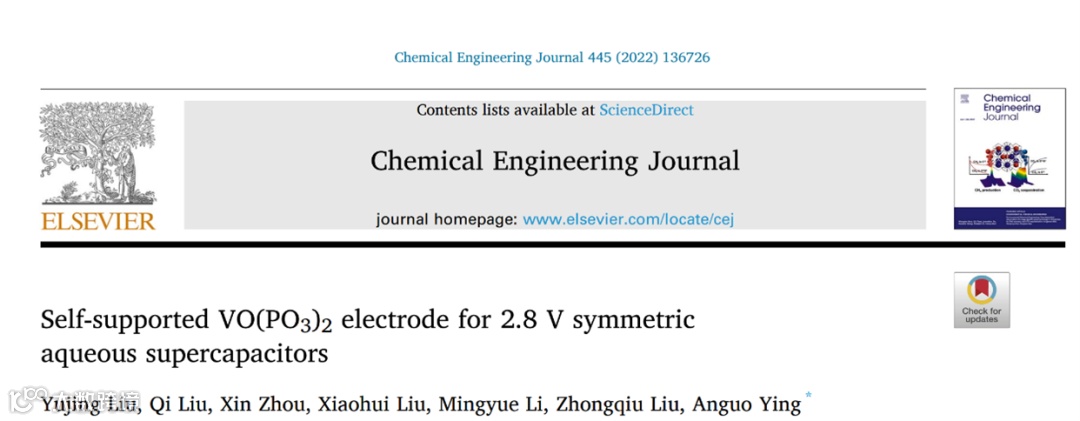 用于2.8 V对称水系超级电容器的自支撑VO(PO3)2电极