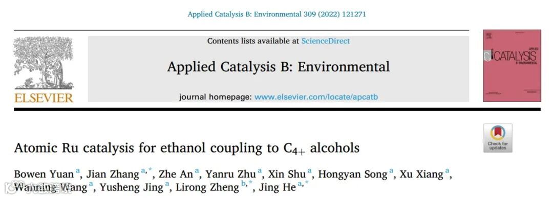 北京化工大学&中科院高能物理研究所ACB: 单原子Ru催化乙醇偶联制备C4+醇
