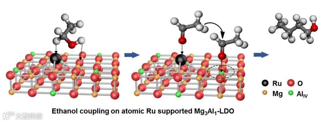 图1. 单原子Ru催化乙醇偶联制备C4+醇示意图。