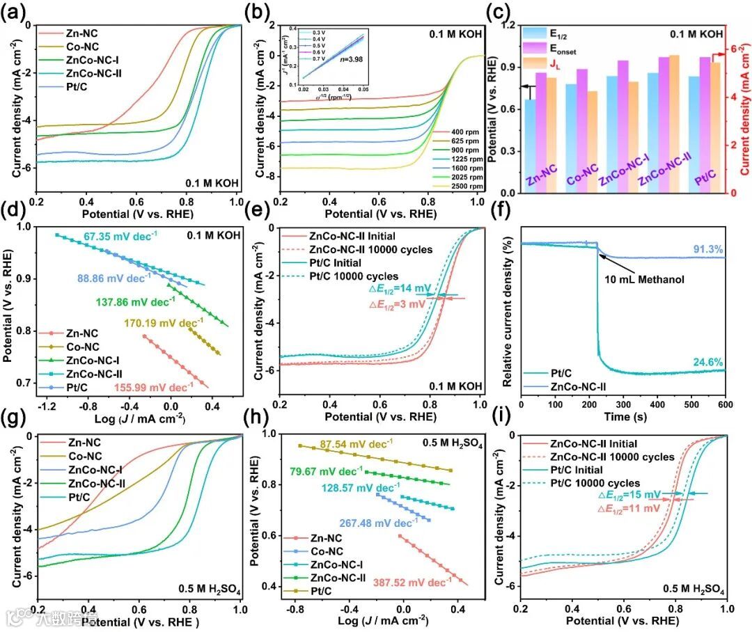 图5. ZnCo-NC-II催化剂和对照样品的电催化ORR性能