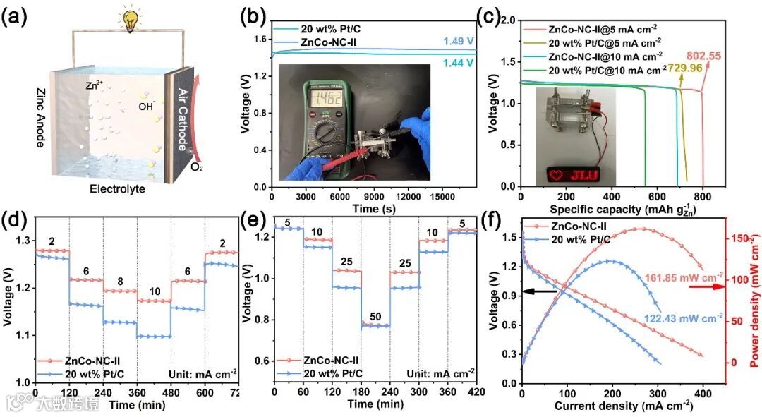 图6. ZnCo-NC-II催化剂和对照样品的锌-空气电池性能