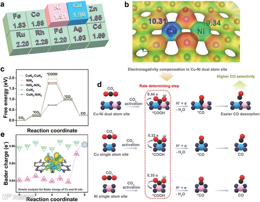图1. CuNi-DSA的电荷补偿效应及其CO2RR反应机理。